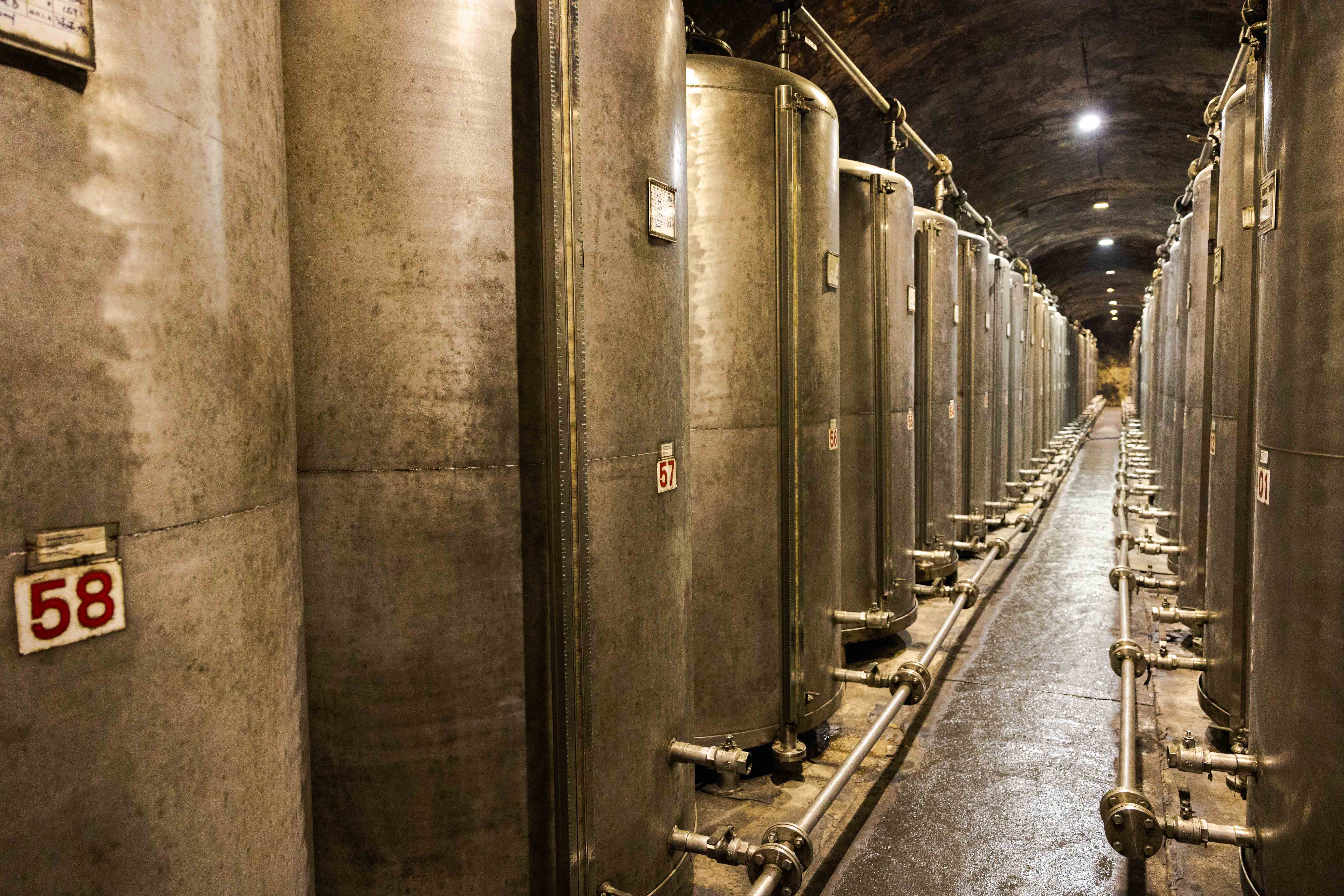 팔팔 갱도 내부의 저장 탱크와 술독.