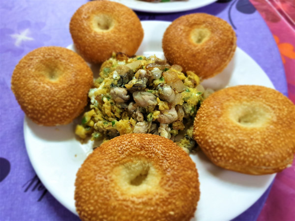 마쭈 버거(繼光餅)와 굴(조개) 속재료.